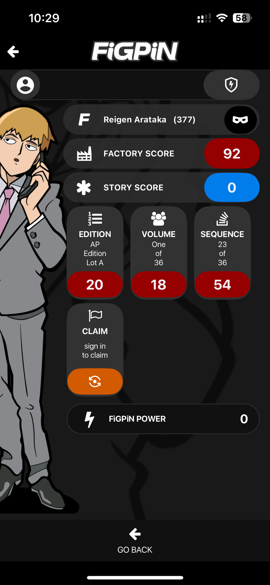 FiGPiN Reigen Arataka #377 AP ARTIST PROOF Mob Psycho 100 Metal Pin